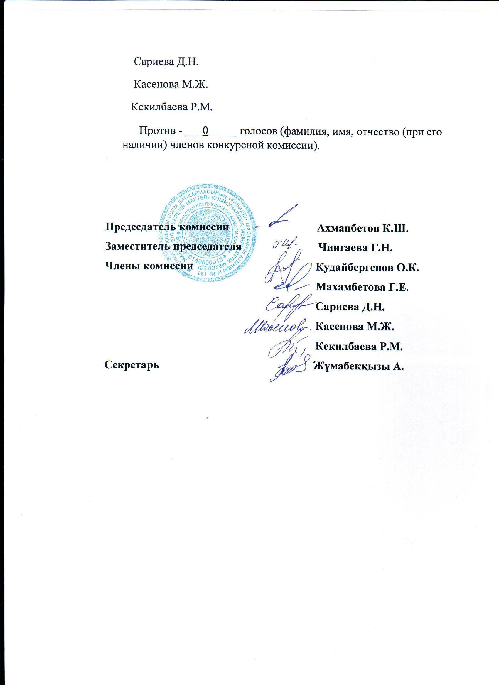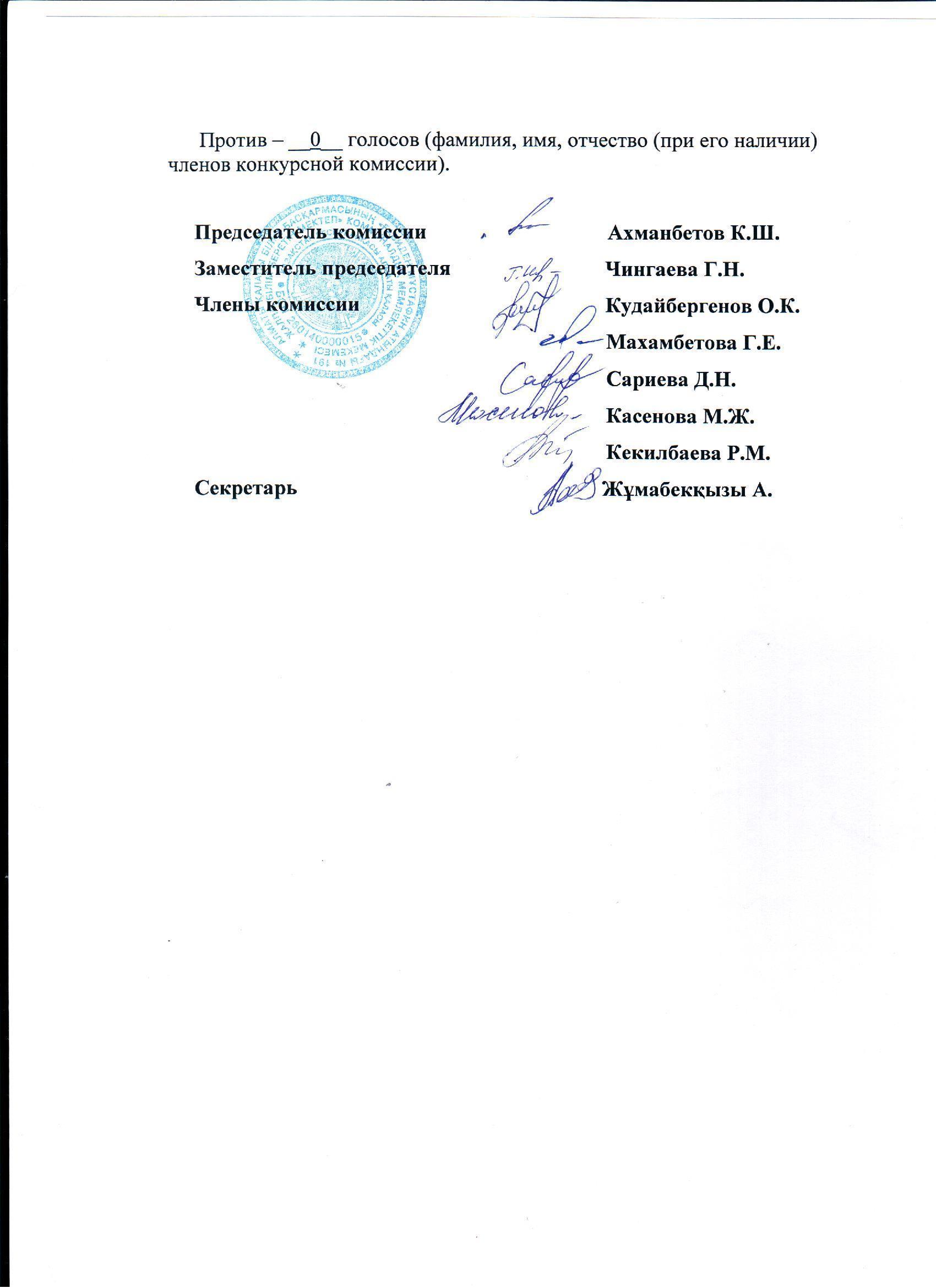 Қабылдау бөлімі :