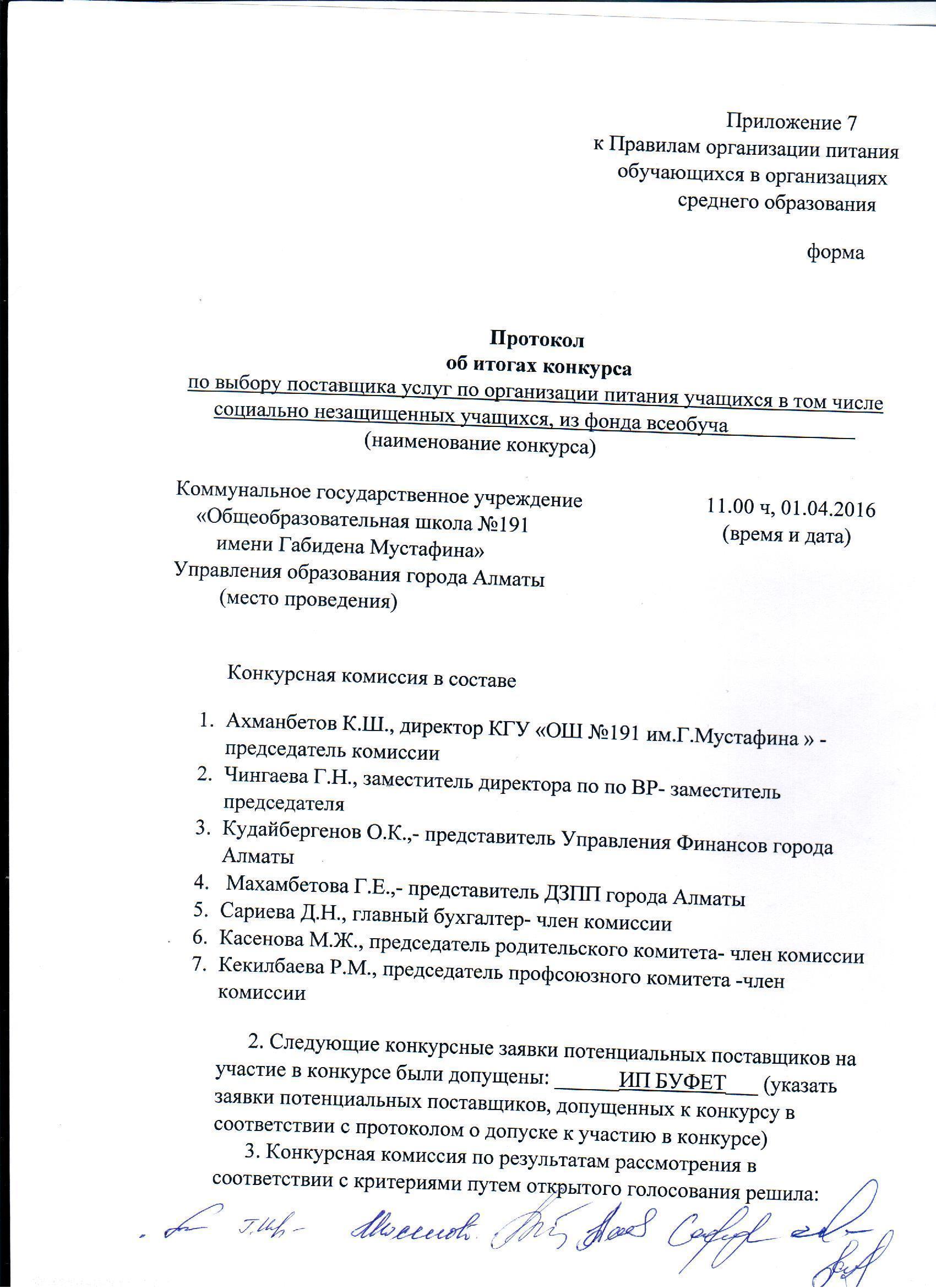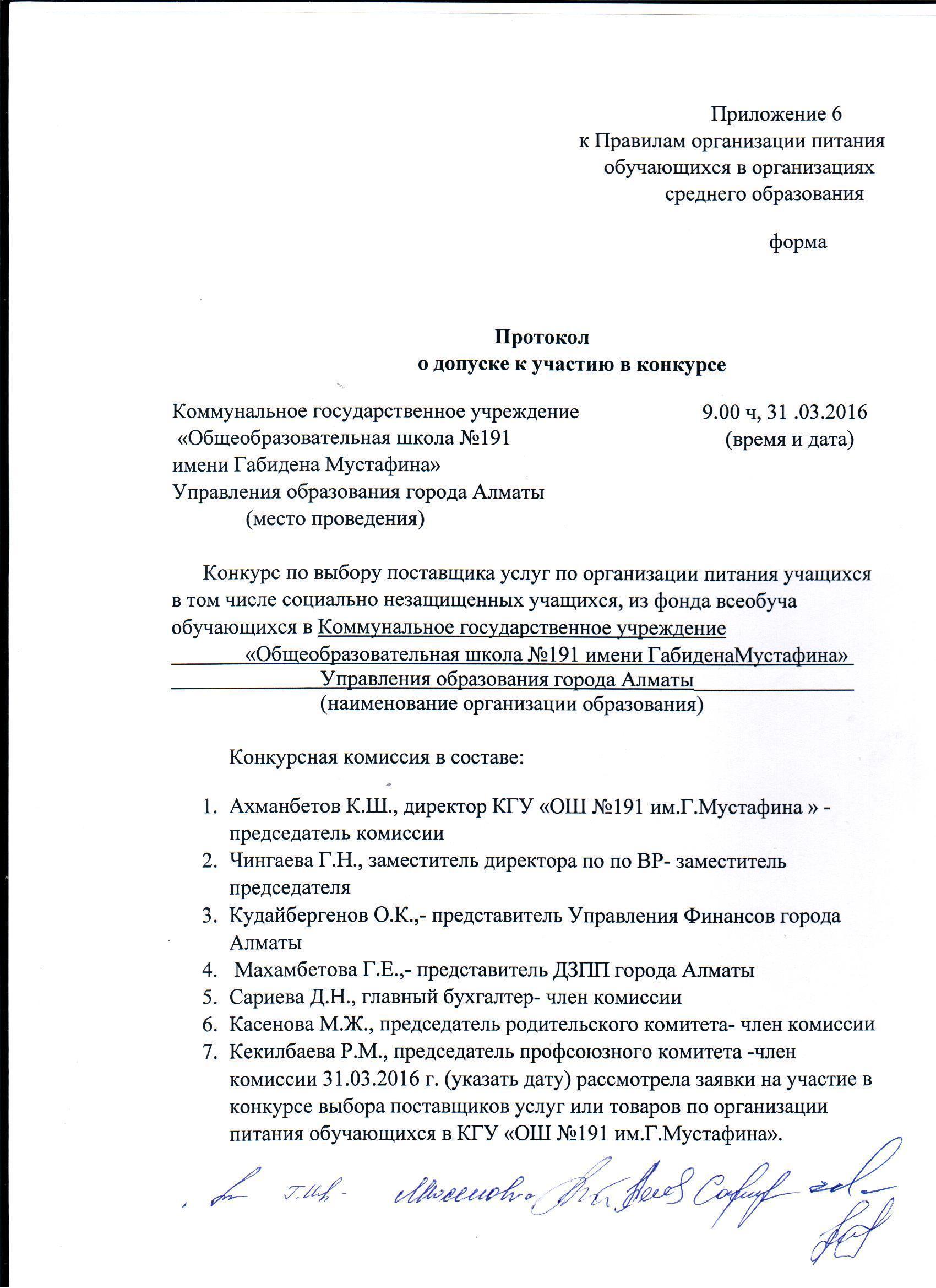 » Протокол допуска и итога