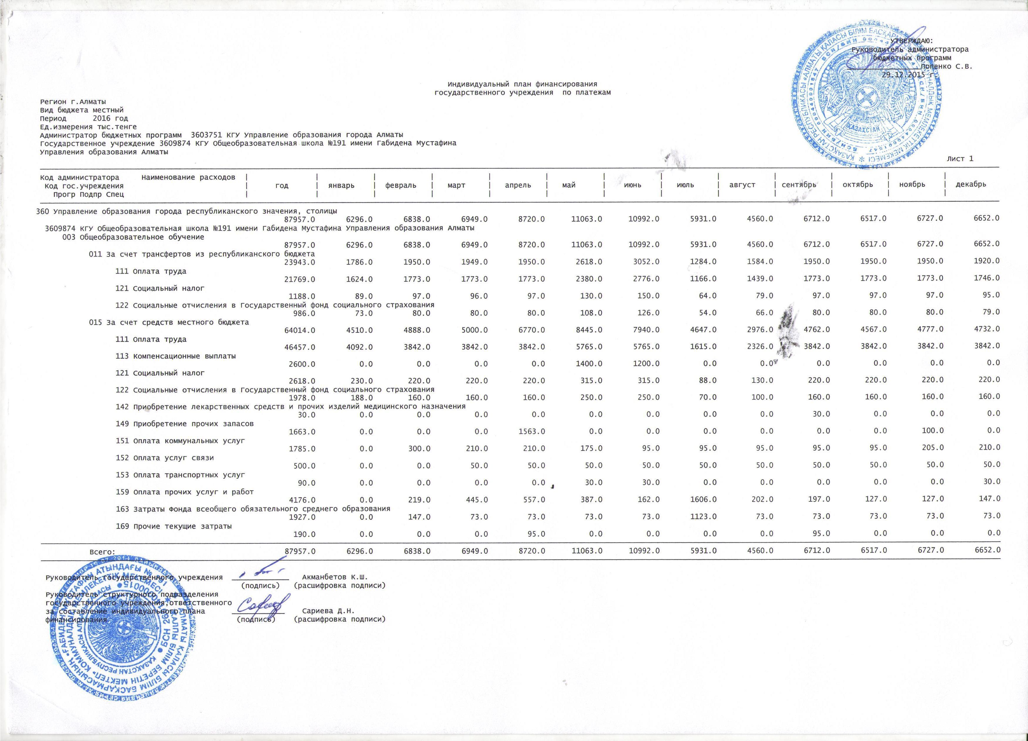 "Ғабиден Мұстафин атындағы №191 жалпы білім беретін мектеп" коммуналдық мемлекеттік мекемесі Бостандық ауданы