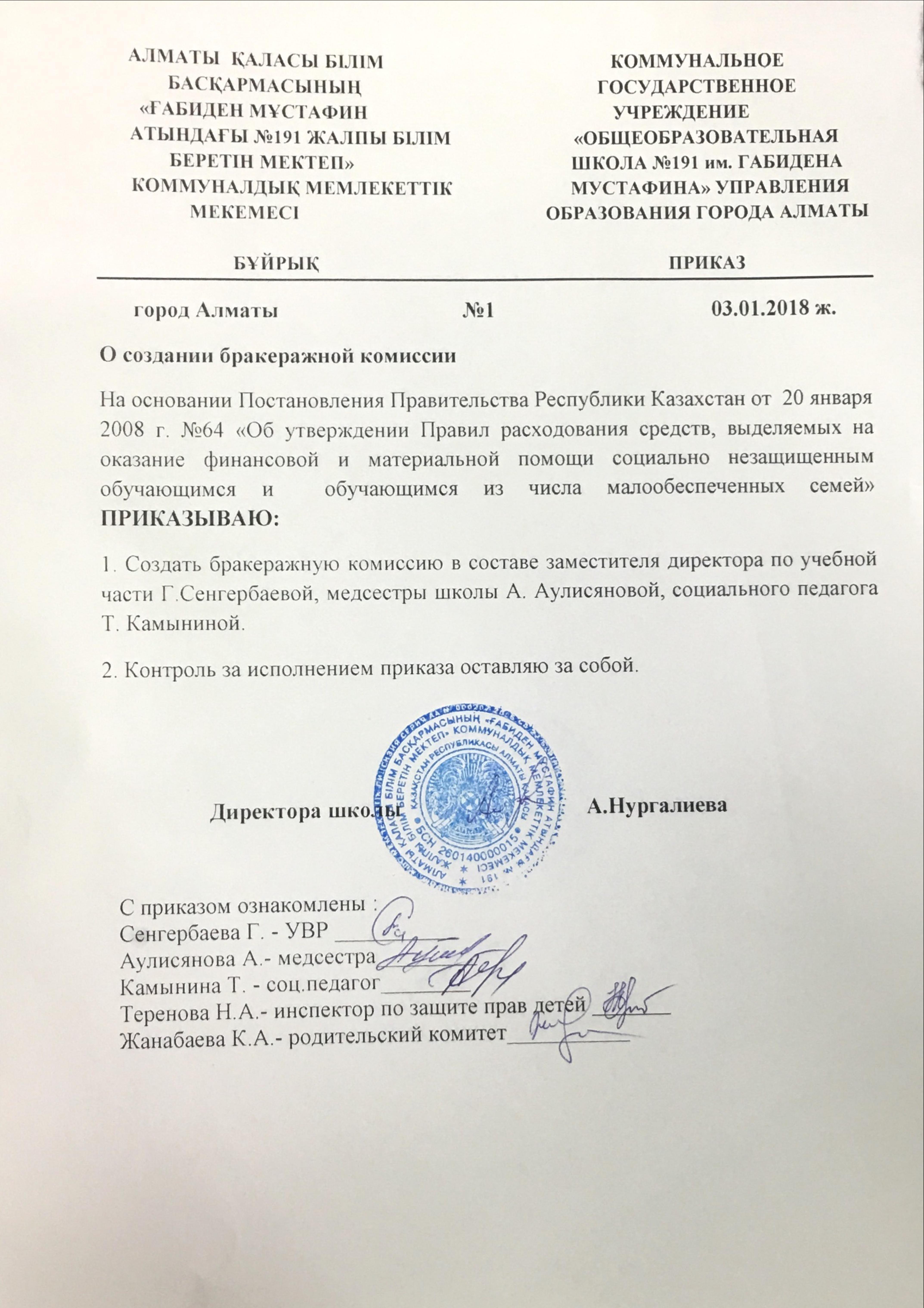"Ғабиден Мұстафин атындағы №191 жалпы білім беретін мектеп" коммуналдық мемлекеттік мекемесі Бостандық ауданы