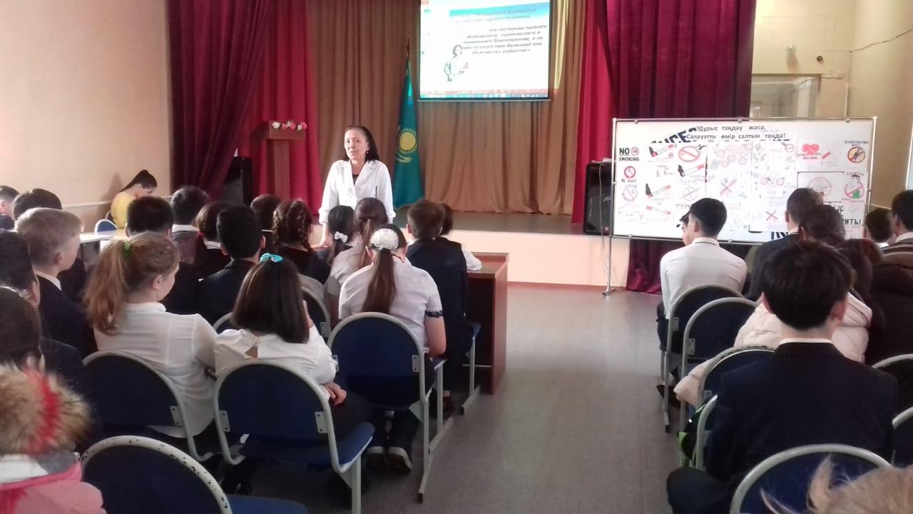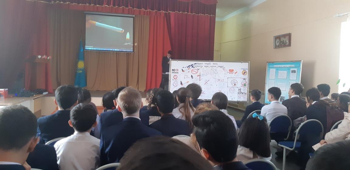 Дүниежүзілік темекімен күрес күніне орай мектепте мектепішілік «Өмірді темекісіз таңдаймыз» тақырыбында акция ұйымдастырылып өткізілді. Акция барысында оқушыларға темекінің зияны туралы бейнероликтер көрсетіліп, мектеп медбикесі темекінің адам өміріне өте қауіпті екені туралы айтты. Оқушылар акцияға белсене қатысып, өз ойларымен де бөлісіп жатты.