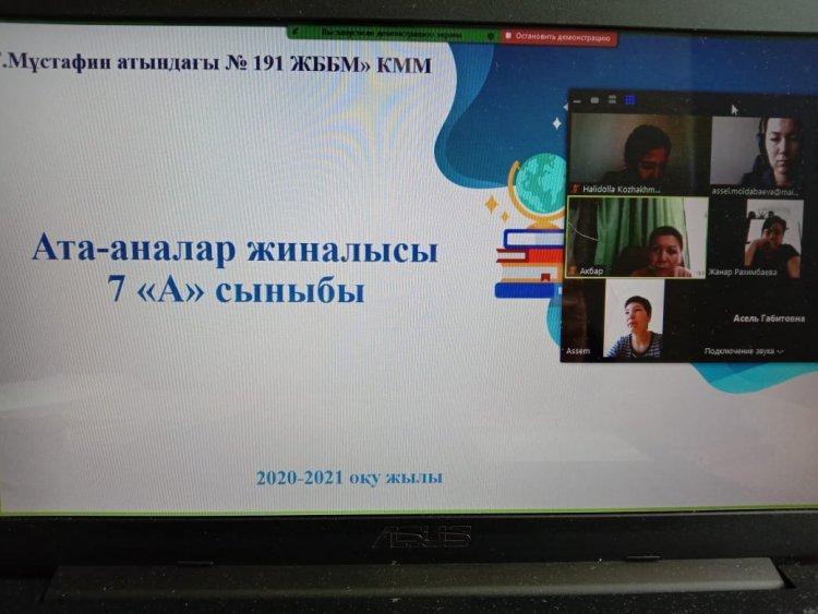 Бүгін 22 мамыр күні Жалпыреспубликалық ата-аналар жиналысын өткізудің тұжырымдамасы негізінде Алматы қаласы, Бостандық ауданы №191 жалпы білім беретін мектепте 7 «А» сынып ата-аналарына арналған жылдық қорытынды онлайн-кездесу өтті.