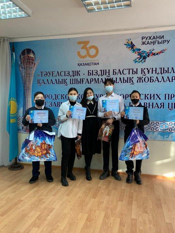?“Қазақстан Тәуелсіздігінің 30 жылдығы” қарсаңында өткен “Тәуелсіздік - біздің басты құндылығымыз” атты қалалық шығармашылық жобалар байқауында 8 “А” сынып оқушылары Айдарұлы Дамир және Қанатов Аслан жүлделі ІІ орынды иеленді!❤️