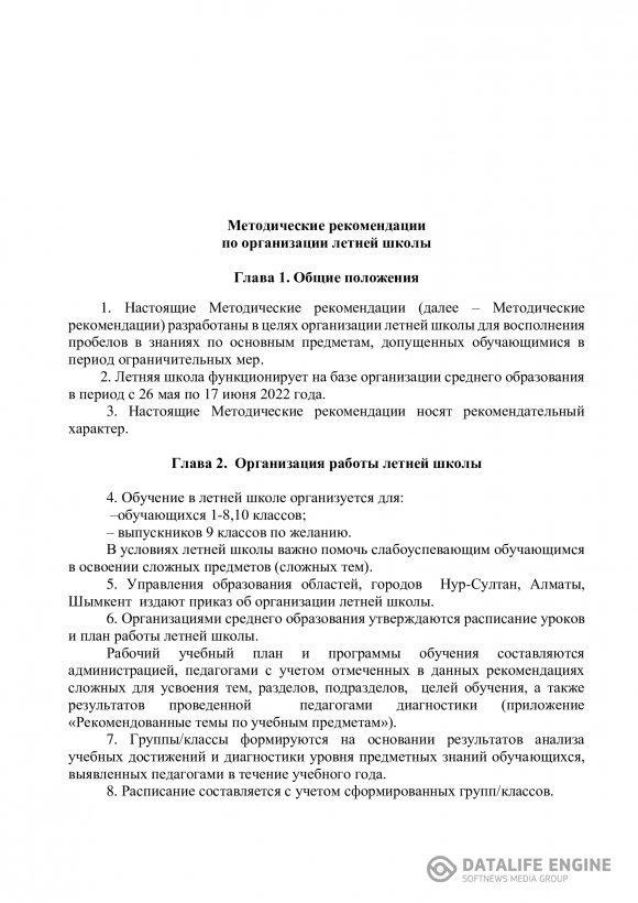 » Методические рекомендации по организации летней школы