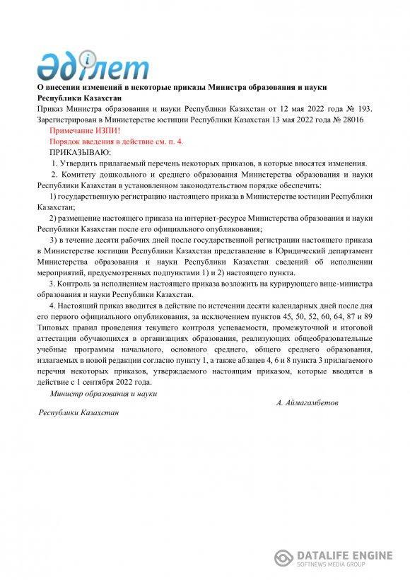 » О внесении изменений в некоторые приказы Министра образования и науки