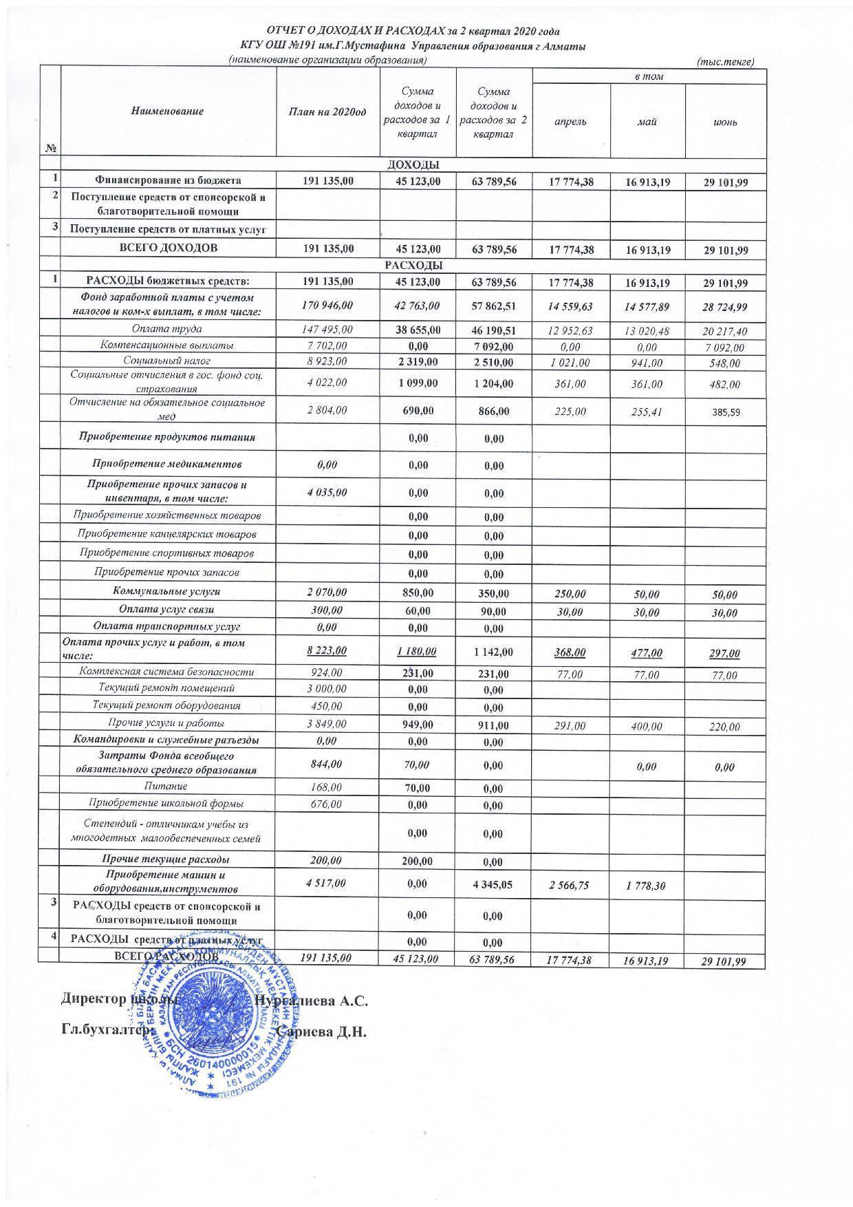 "Ғабиден Мұстафин атындағы №191 жалпы білім беретін мектеп" коммуналдық мемлекеттік мекемесі Бостандық ауданы