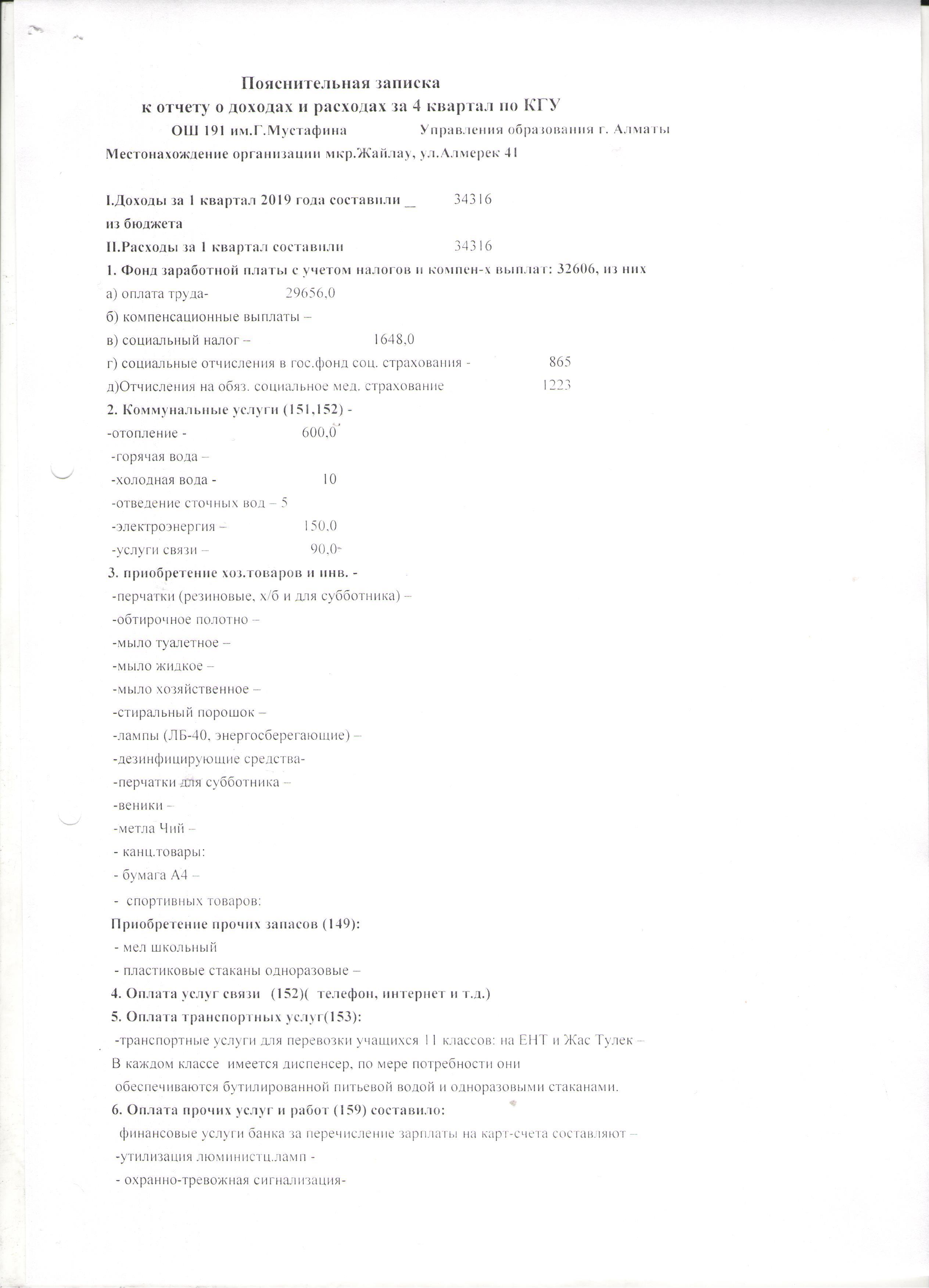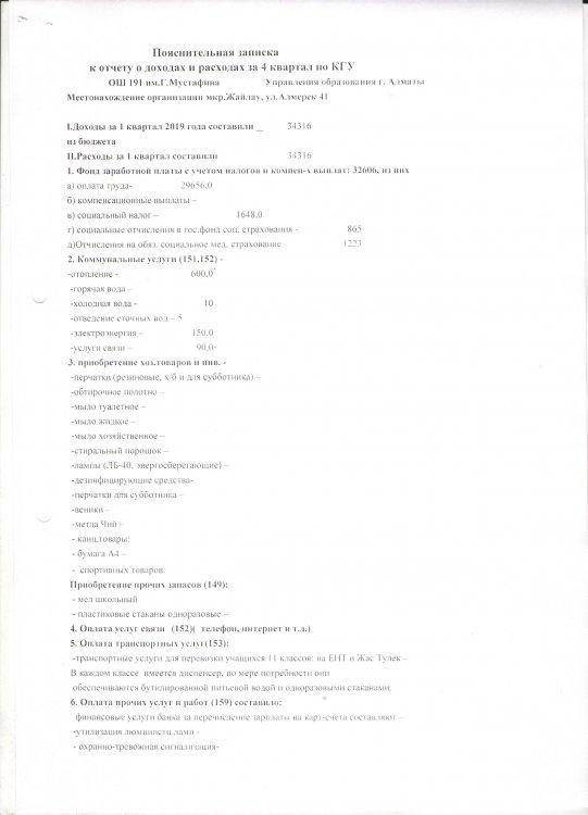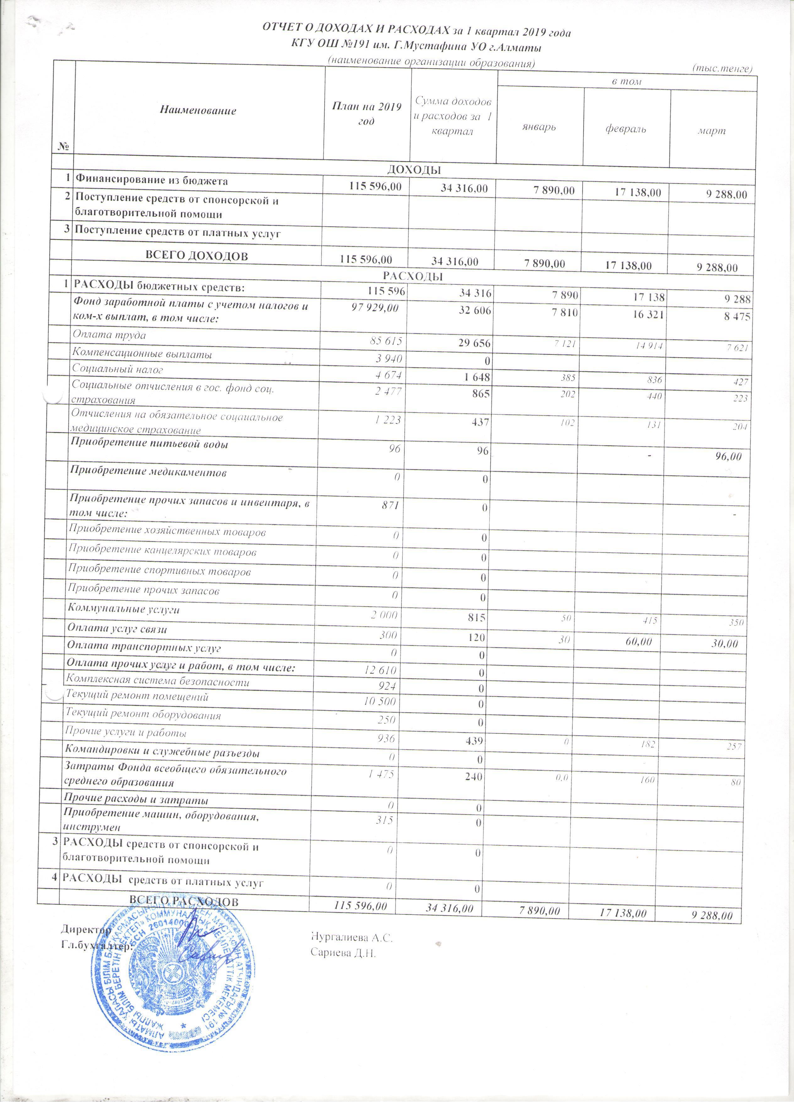 » Отчет о доходах и расходах за 1 квартал 2019