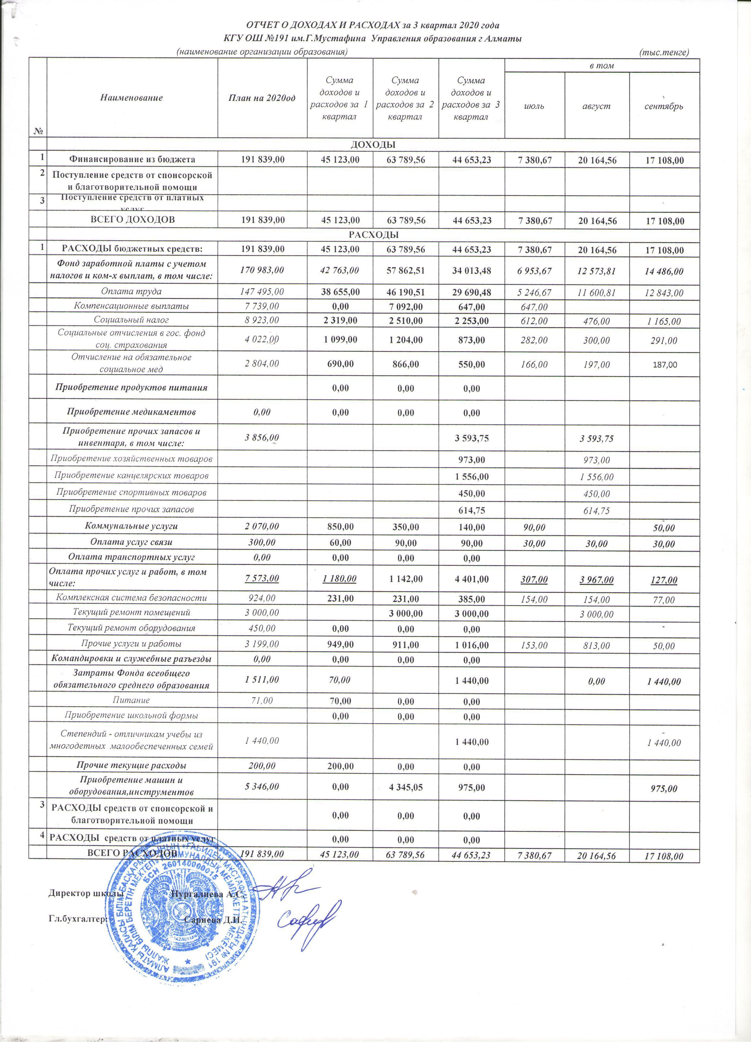 Отчет о доходах и расходах за 3 квартал 2018 года