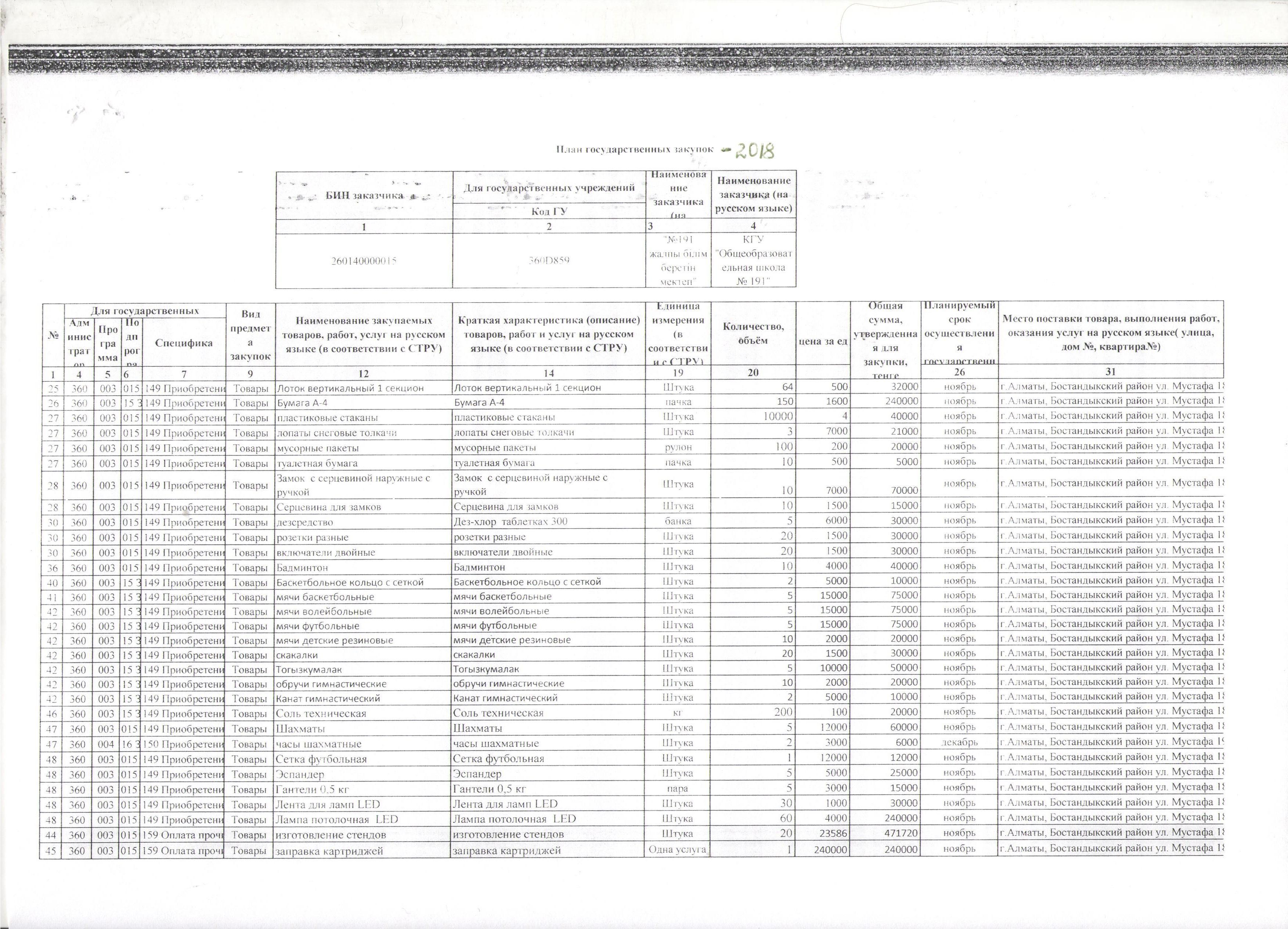 » План государственных закупок на 2018