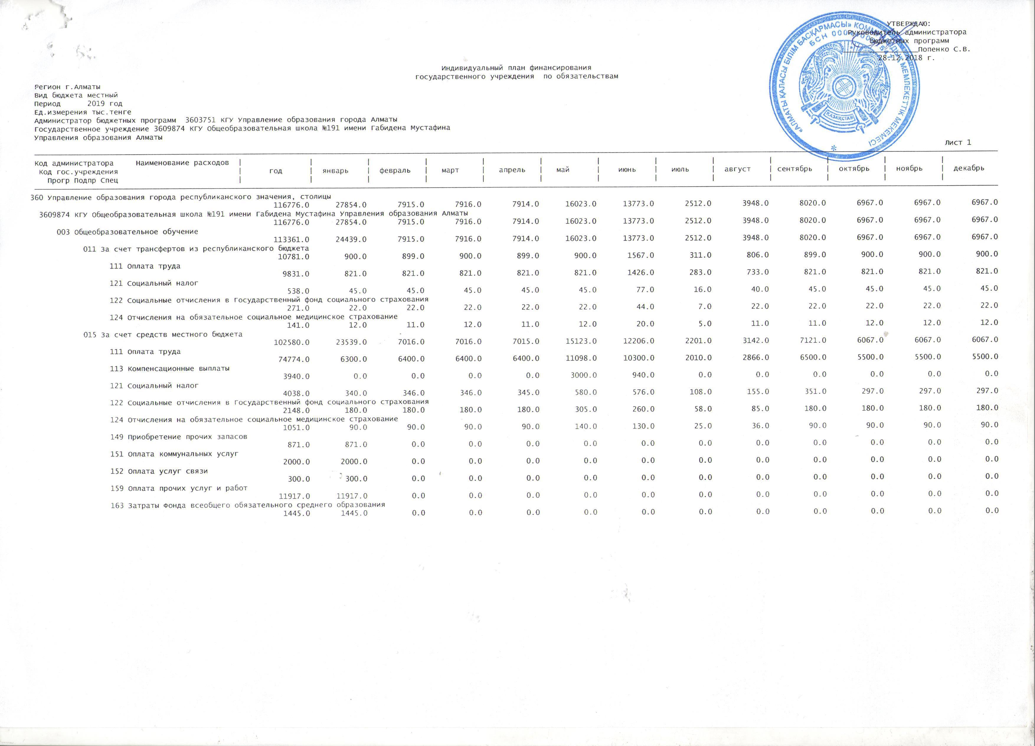 "Ғабиден Мұстафин атындағы №191 жалпы білім беретін мектеп" коммуналдық мемлекеттік мекемесі Бостандық ауданы