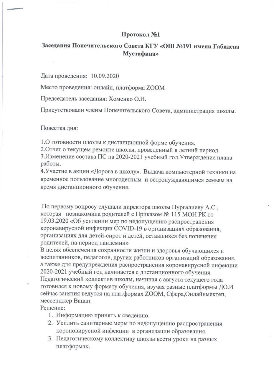 » Заседания Попечительского Совета КГУ "ОШ № 191 им.Г.Мустафина"