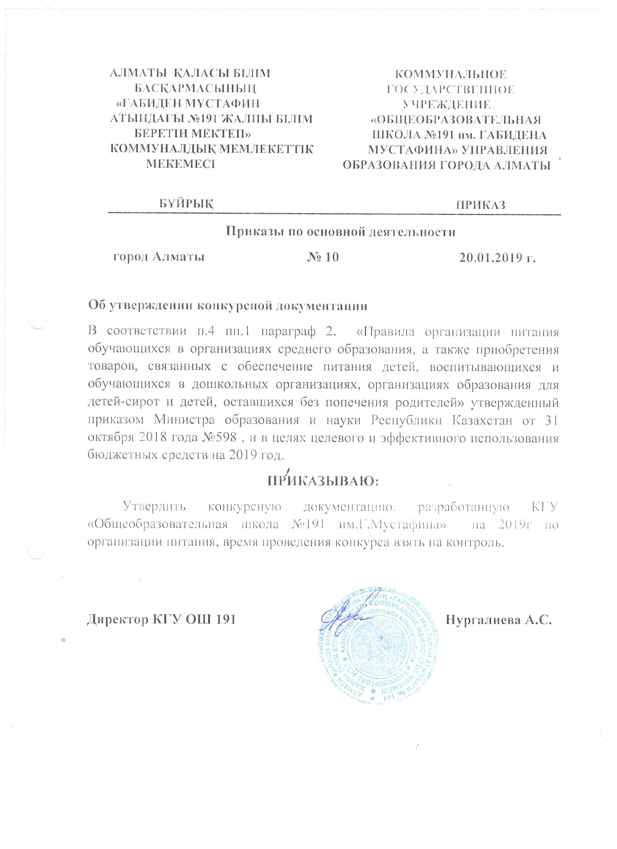 Приказ №1а "Об утверждении конкурсной документации"