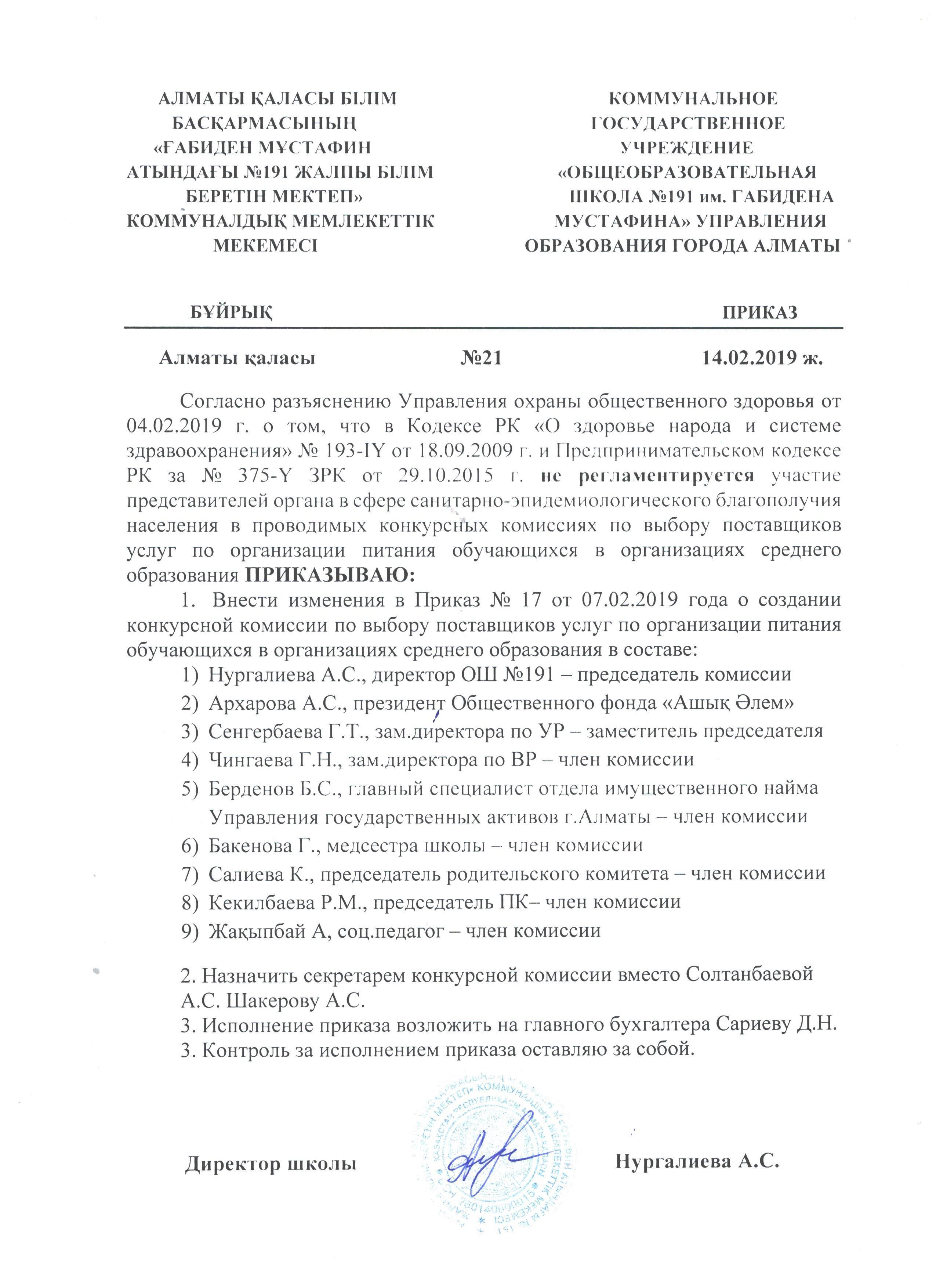 "Ғабиден Мұстафин атындағы №191 жалпы білім беретін мектеп" коммуналдық мемлекеттік мекемесі Бостандық ауданы