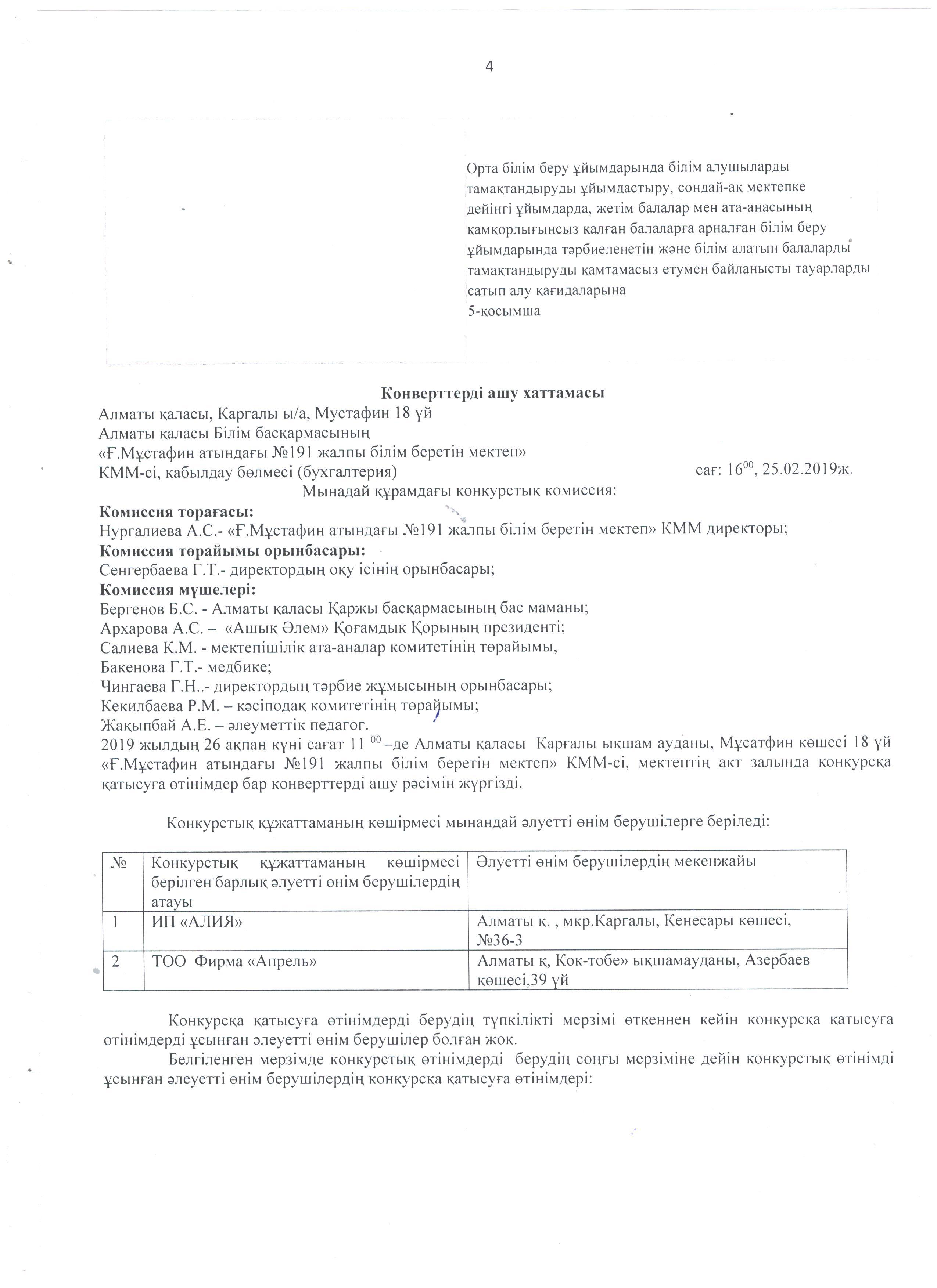 "Ғабиден Мұстафин атындағы №191 жалпы білім беретін мектеп" коммуналдық мемлекеттік мекемесі Бостандық ауданы