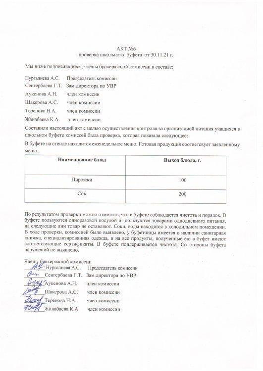 » Акт №6 проверки школьной столовой от 30.11.2021 г.