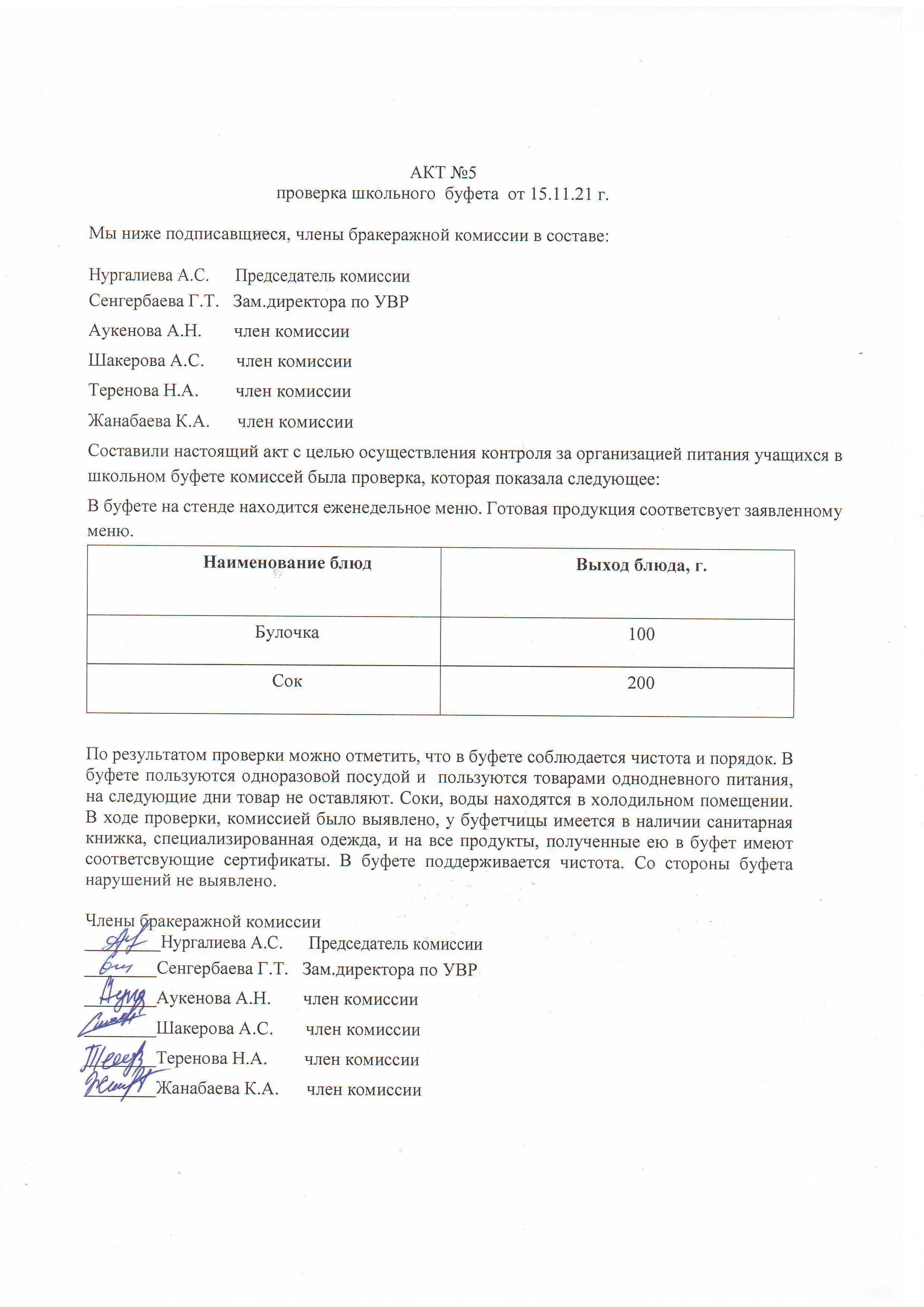 » Акт №5 проверки школьной столовой от 15.11.2021 г.