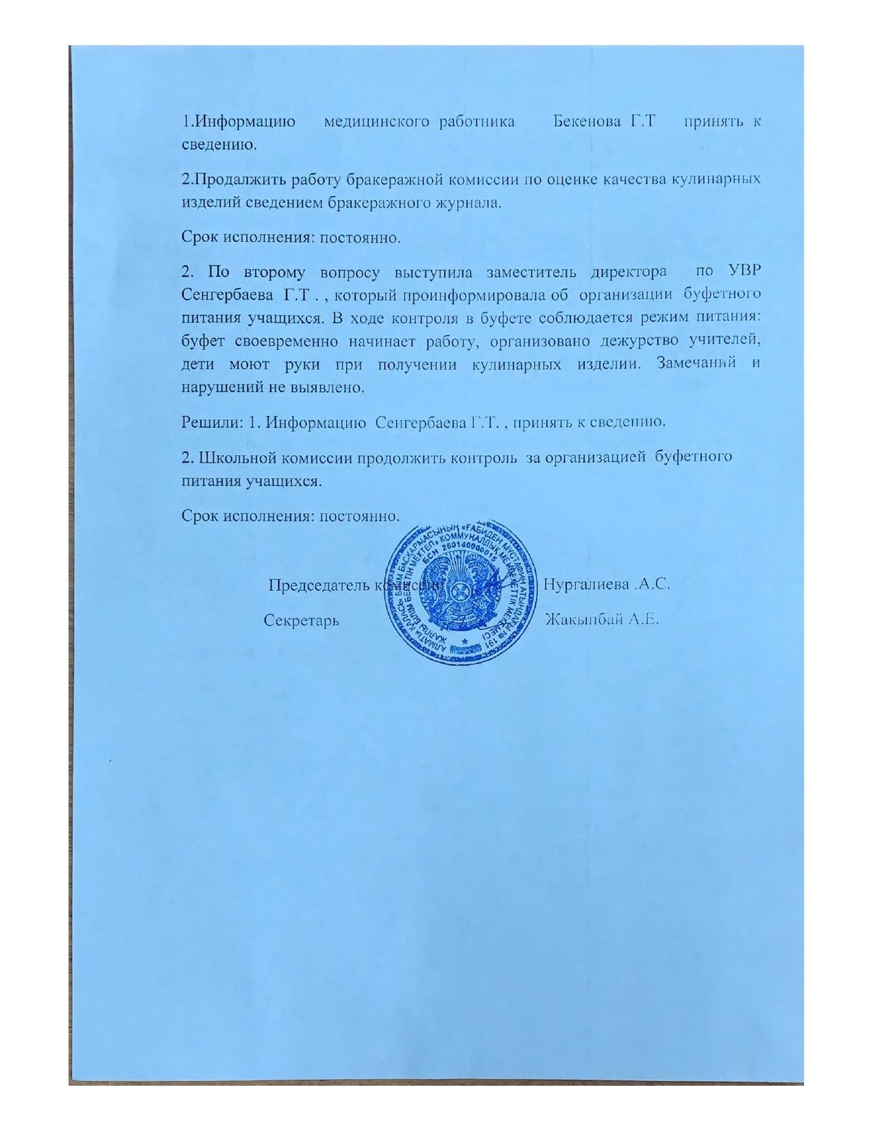 » Протокол заседания комиссии по мониторингу за качеством питания