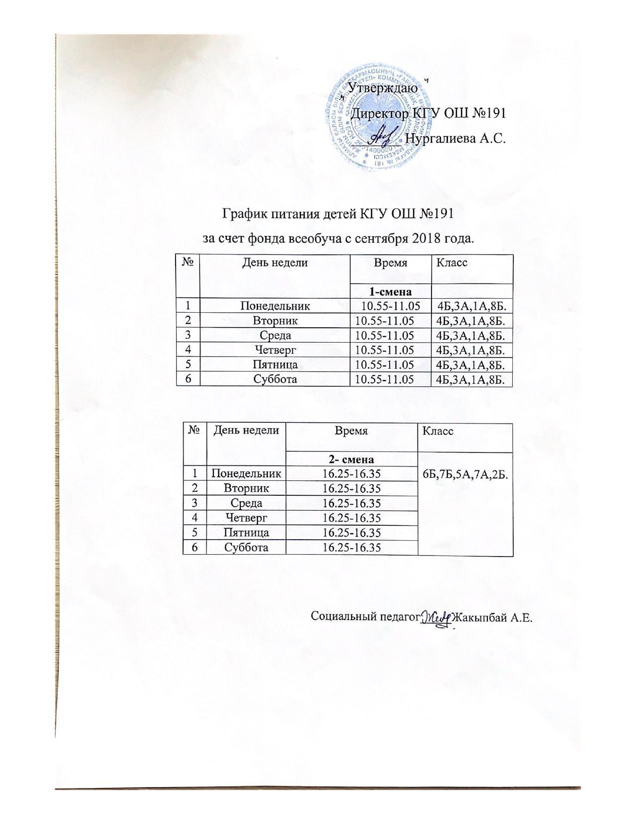 График питания в школьной буфете для учащихся 1 -11 кл.